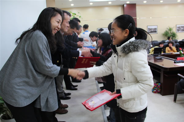 張靜(jìng)對(duì)出←<☆資設立獎學金(jīn)的(de)日(rì)本永旺1%俱樂(yuè)部和(© hé)天門世貿中心有限公司表示了(le)感謝(xiè)。
