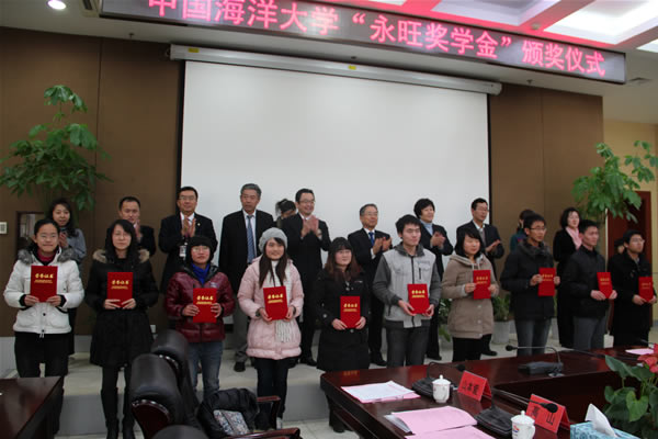 12月(yuè)22日(rì),“永旺獎學金(jīn)”≤∞₩§第四屆中國(guó)海(hǎi)洋大(dà)學頒獎儀±§γ式在中國(guó)海(hǎi)洋大(dà) ±¶學崂山(shān)校(xiào)區(qū)圖 ←書(shū)館第一(yī)會(huì)議(yì)室舉行(x×±íng)。永旺株式會(huì)社董事(shì)長(cháng)、永旺1%γ€俱樂(yuè)部委員(yuán)長(cháng)林(lín)直樹(shù),天σ™門世貿中心有限公司總經理(lǐ)折口史明(míng),海(hǎi) ✔β←大(dà)黨委副書(shū)記張靜(jìng)等出席頒獎儀式。