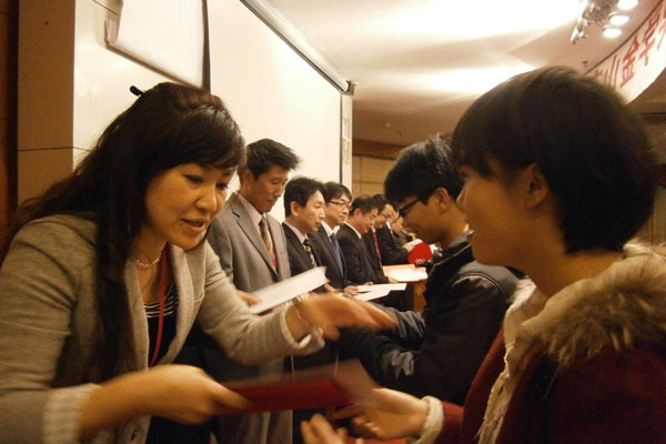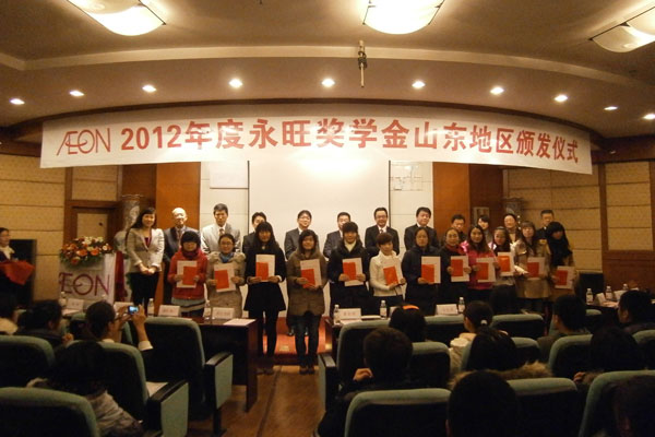 天門世貿中心有限公司與中國(guó)海(hǎi)洋大(dà)學、青島大(×Ω£dà)學兩所高(gāo)校(xiào)聯合主辦的(de)“2012年(≠nián)度永旺獎學金(jīn)山(shān)東(dōng)地(dì)區(<∏qū)授獎儀式”在東(dōng)方航空(kōδ"ng)大(dà)廈舉行(xíng)。