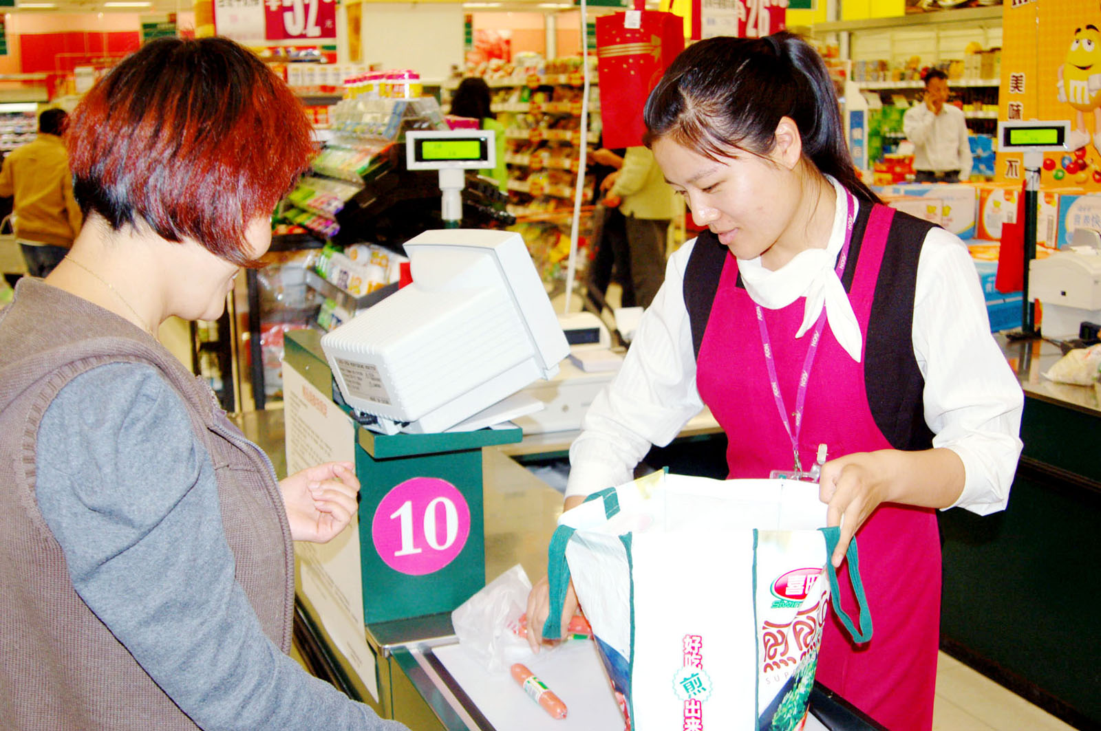 •為(wèi)了(le)削減造成地(dì)球溫室效應的(de)二氧化(h>"uà)碳,攜手顧客一(yī)起開(kāi)≠÷© 展 “自(zì)帶購(gòu)物(wù)袋”和(hé)銷售“®™∏我的(de)購(gòu)物(wù)袋”這(zhè)兩項節省資源活動。